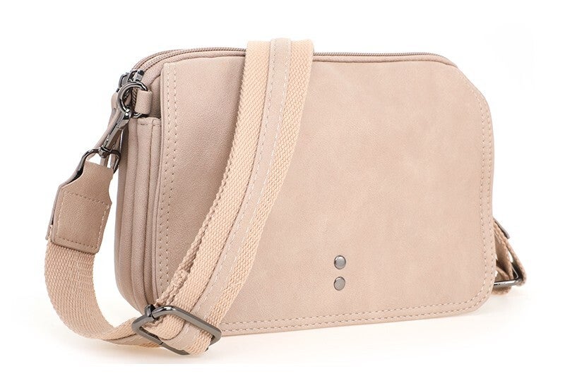 Op zoek naar een klein, maar fijn tasje voor je dagelijkse avonturen? Het Madrid tasje is de perfecte match! Met een flap die sluit met een drukmagneet en twee ruime ritsvakken aan de bovenkant, biedt dit stijlvolle tasje genoeg ruimte voor je telefoon, pasjes en andere essentials. Praktisch én chic – wat wil je nog meer?