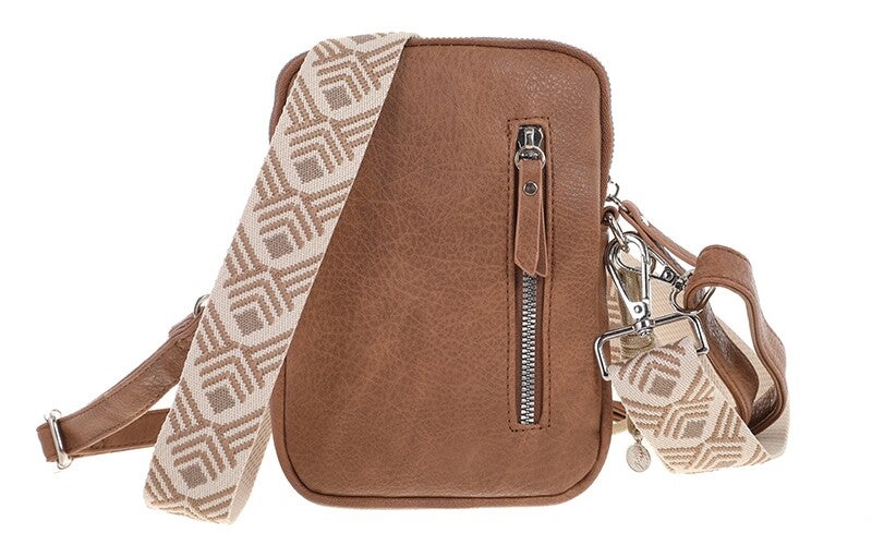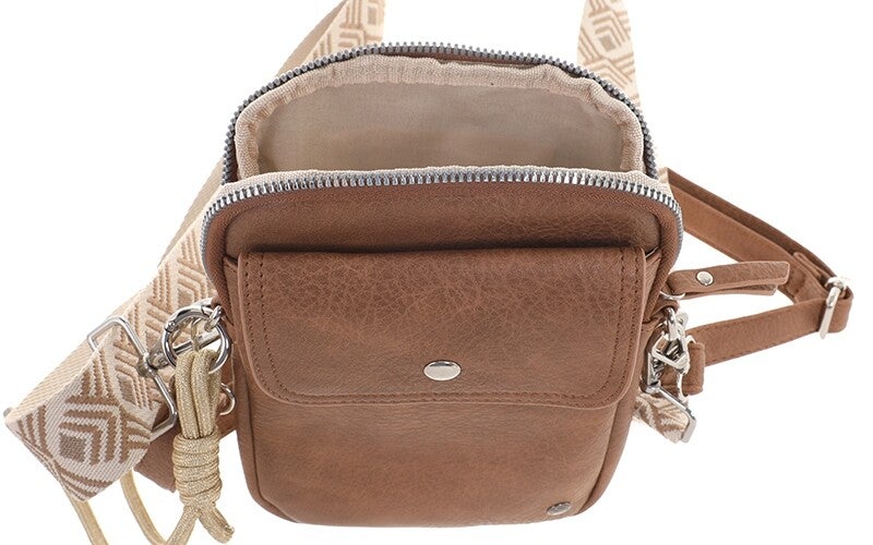 De voorzijde is voorzien van een extra vak met drukknopsluiting – handig voor spullen waar je snel bij moet. Binnenin vind je een hoofdvak met ritssluiting en genoeg ruimte voor je telefoon, sleutels, pasjes of andere essentials. De brede geweven schouderband geeft dit tasje nét dat beetje extra stijl, en is uiteraard verstelbaar voor optimaal draagcomfort.