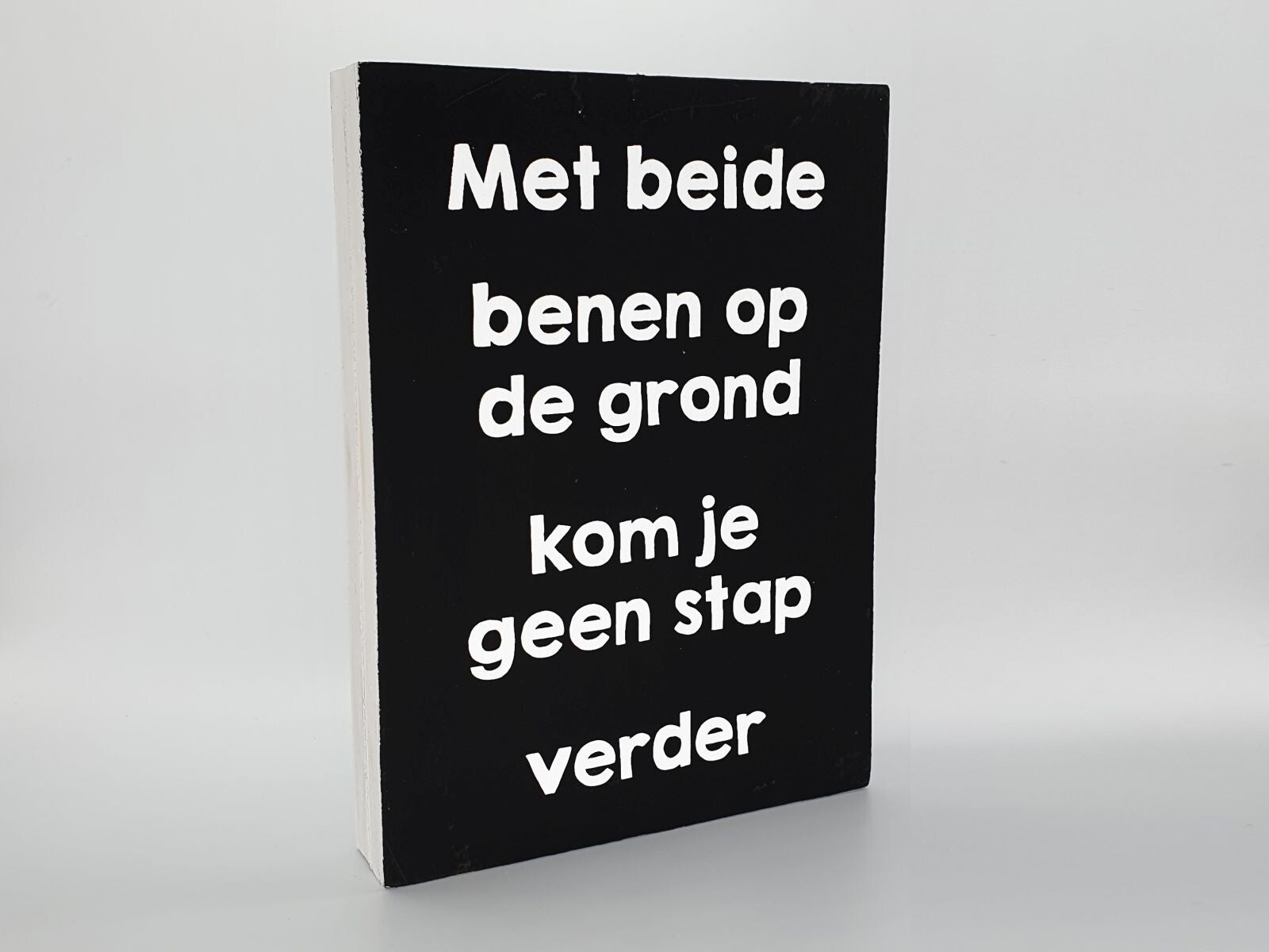 tekstblok Met beide benen op de grond kom je geen stap verder*2621